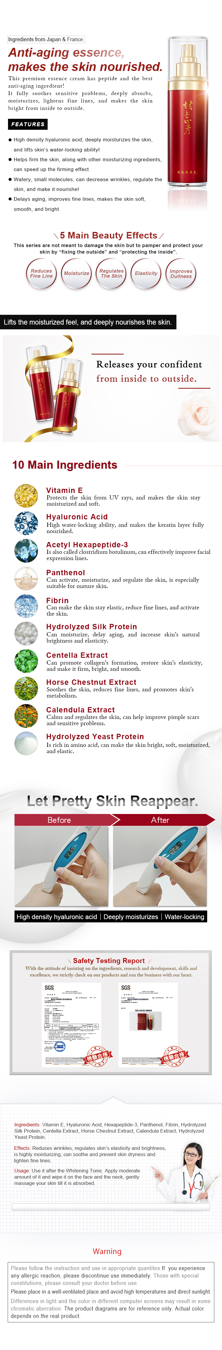 Delays aging, improves fine lines, makes the skin soft, smooth, and bright